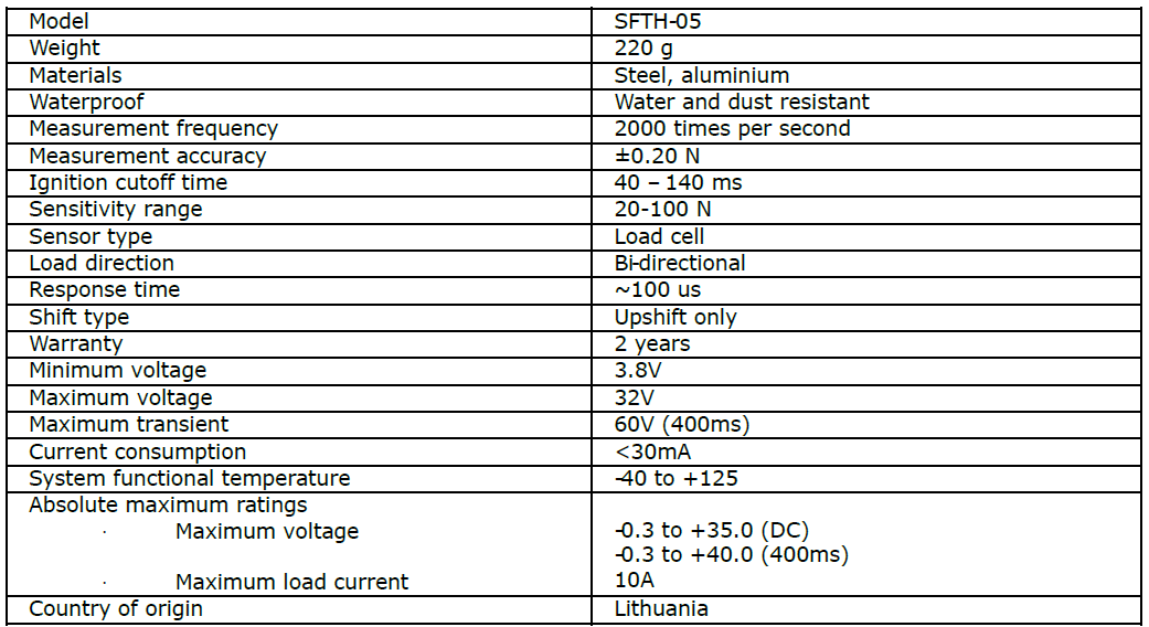 Shiftytech, MB warrants that its products are free from material defects in workmanship and materials under normal use and service, for a period of two (2) years from the date of original purchase, in accordance with applicable laws of the European Union and the Republic of Lithuania.