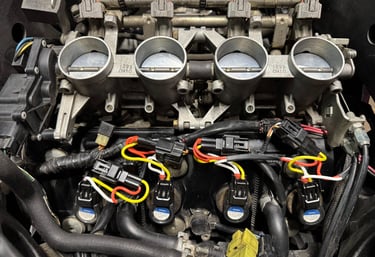 Locate a secure and protected area on the motorcycle for mounting the control box — ideally under the seat or within a similarly sheltered location. Carefully route all wiring from the control box to the linkage, ensuring cables are free from sharp edges, heat sources, or any moving components that could cause damage. Shifty quickshifter connects directly to the plug-top ignition coils, offering several key advantages. One of the most significant benefits is complete independence from the motorcycle's ECU and factory wiring harness. This design ensures more consistent and precise shifting performance—often surpassing that of ECU-integrated systems.